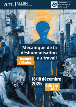 salle 3.09 du bâtiment Multimédia T1 29, avenue robert schuman, aix-en-provence, FranceJournée d'Etude "Mécanique de la déshumanisation au travail" est innovant et s'inscrit dans un axe structurant du LPS. Cette manifestation contribuera à ouvrir de nouvelles perspectives scientifiques Sur les lieux de travail contemporains, les perceptions de déshumanisation des travailleurs sont de plus en plus répandues (Organisation internationale du travail, 2016). L'essor de l'automatisation et des […]